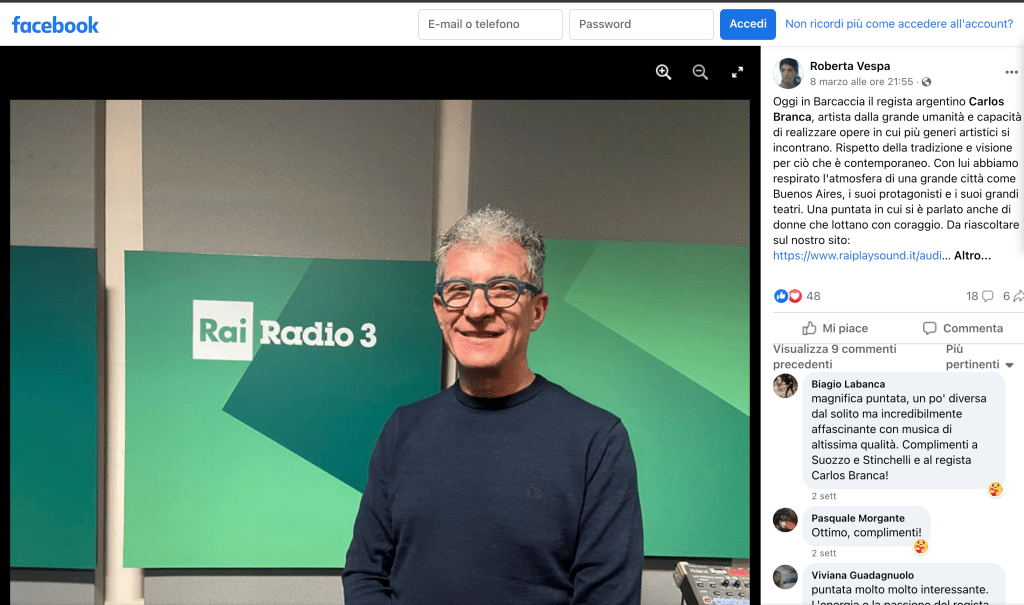 Intervista al regista Carlos Branca – con Enrico Stinchelli e Michele Suozzo dell’8 marzo 2023.